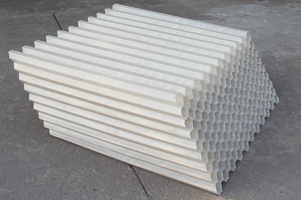 ? ?3、完成蜂窩填料燙接。按斜管填料的粘接方法將每一個斜管填料包裝作為一個單獨的燙接單元,一個單元完成燙接后為1平方,粘接完成后在場地上整齊堆放(保留少量的散片備用)。